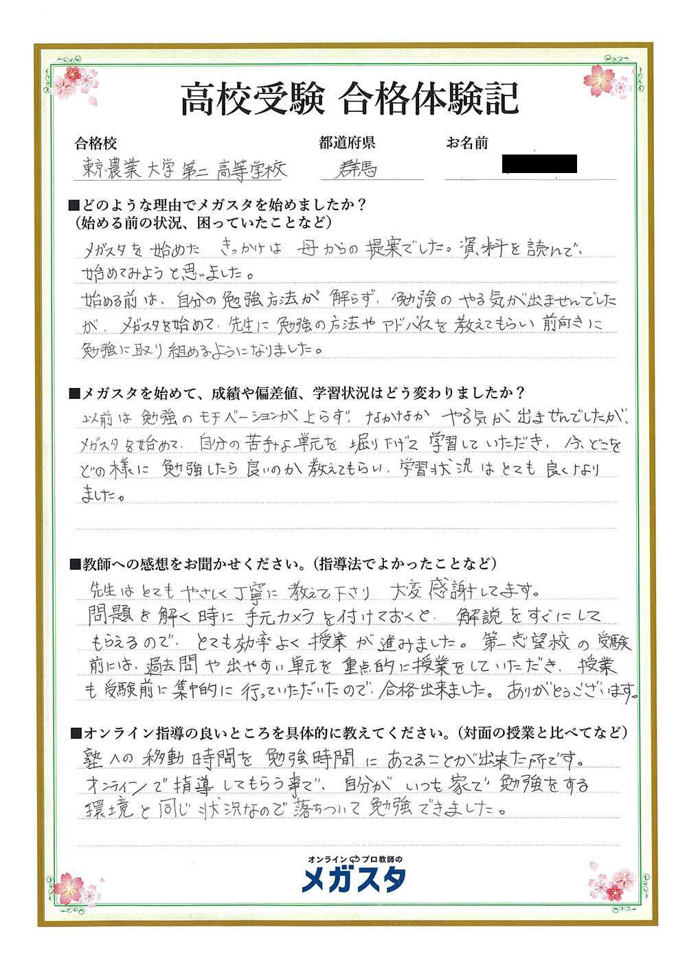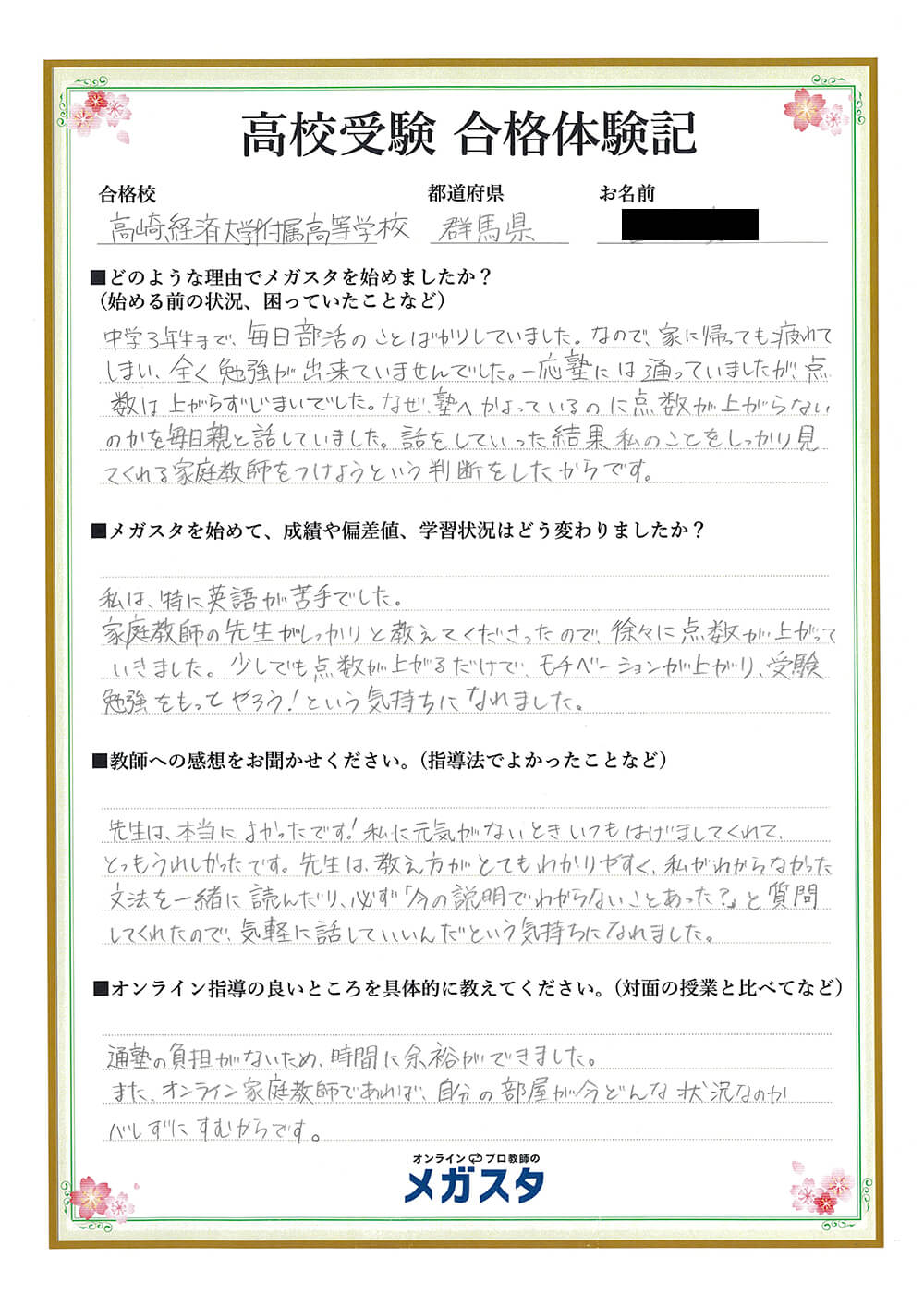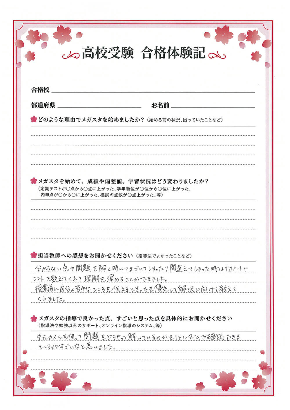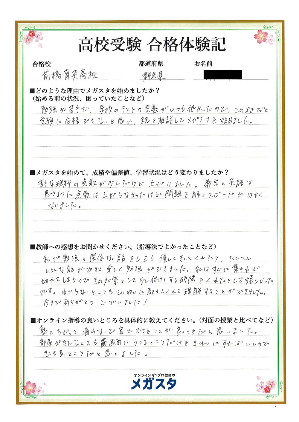 メガスタ群馬県校に届いた生徒さんのよろこびの声をほんの一部だけご紹介します。