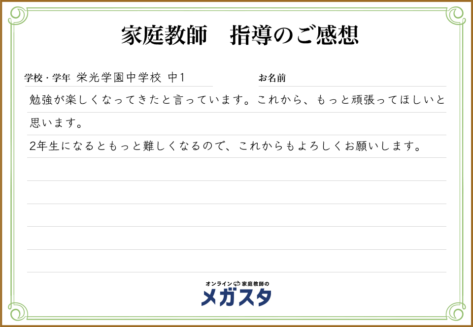 勉強が楽しくなってきたと言っています。これから、もっと頑張ってほしいと思います。