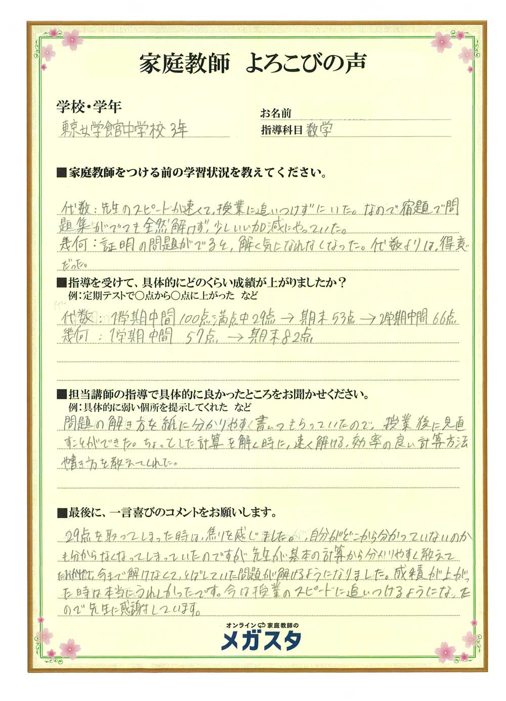 メガスタで成績が上がった! 東京女学館中学・高校の